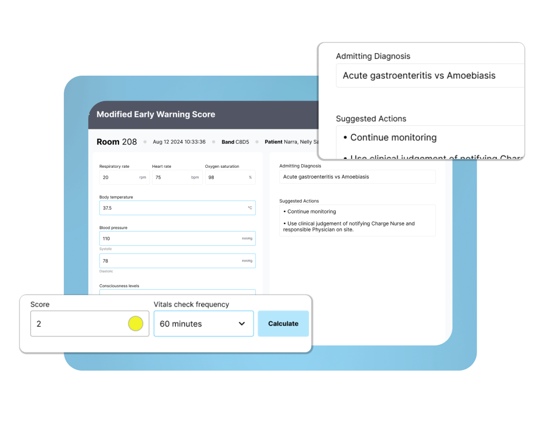 The VSynC incorporates the Modified Early Warning Score (MEWS) rubric, enabling medical professionals to assess patient conditions quickly and accurately.